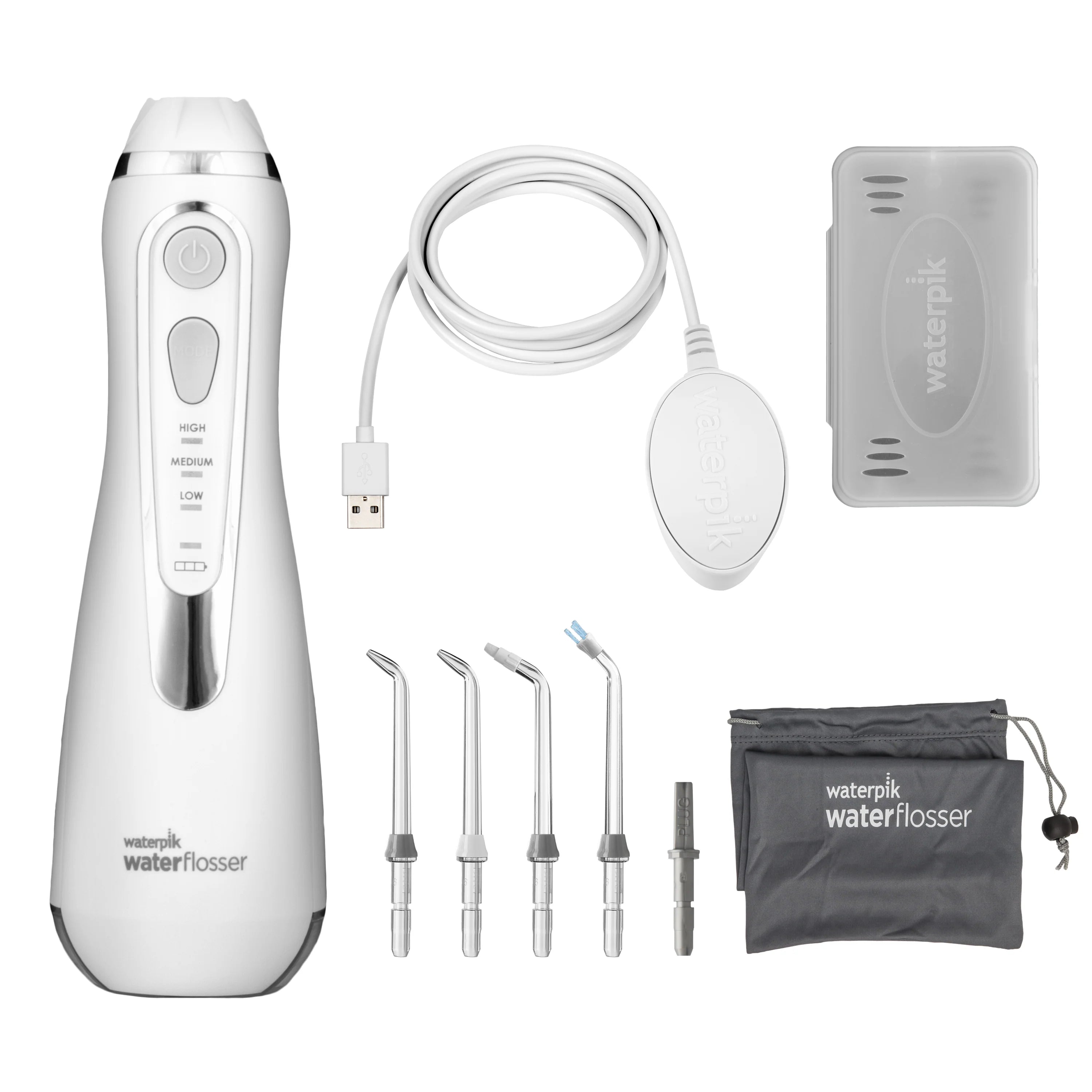 This model comes with 4 flossing tips for a variety of dental needs, 3 pressure settings, a microfiber travel bag and travel water plug to help prevent leakage during transport, a tip storage case, and a removable water reservoir with up to 45 seconds of flossing time. The special 360-degree rotating tip handle easily reaches your whole mouth, even back teeth.